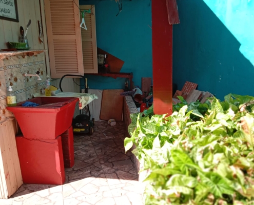 .pátio calçado nos fundos.
